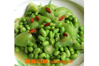 丝瓜毛豆 是一道相当美味的菜,做法也不是很复杂,一学即会,尝试一下吧: 特点 咸鲜味美,清淡适口。 材料 主料:丝瓜150克,毛豆150克, 调料:盐2克,味精3克,胡椒粉1克,色拉油50克,豌豆淀粉5克 做法 1.丝瓜去皮,切成片; 2.毛豆去壳,洗净,入沸水汤...阅读全文>>